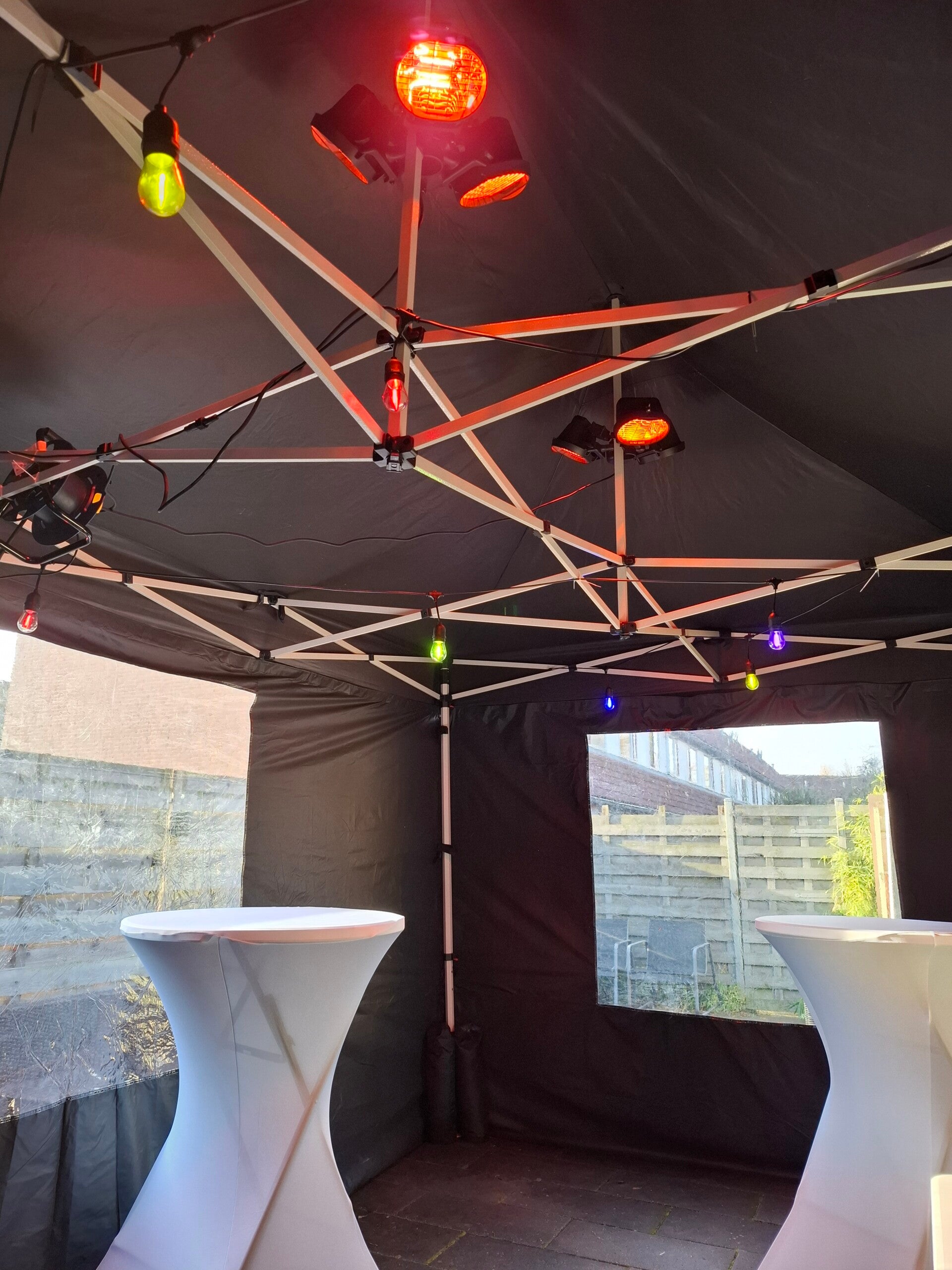 Ben je op zoek naar een praktische en efficiënte oplossing om je gasten warm te houden tijdens een feestje? Onze terrasverwarmer is perfect voor gebruik in Easy Up partytenten. De terrasverwarmer is eenvoudig op te hangen en biedt directe warmte dankzij drie krachtige lampen met een totaal vermogen van 1500 watt. Hierdoor blijft iedereen comfortabel, zelfs op koudere momenten. Maak van jouw evenement een succes met deze handige toevoeging!